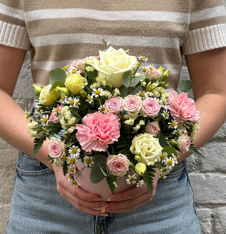 Our Pastel Flower Arrangement is made up of beautiful seasonal flowers. Presented in a ceramic pot, this is the perfect gift for someone who wants a low maintenance floral display, your ceramic pot will go on to make a perfect plant pot when your flowers have finished.