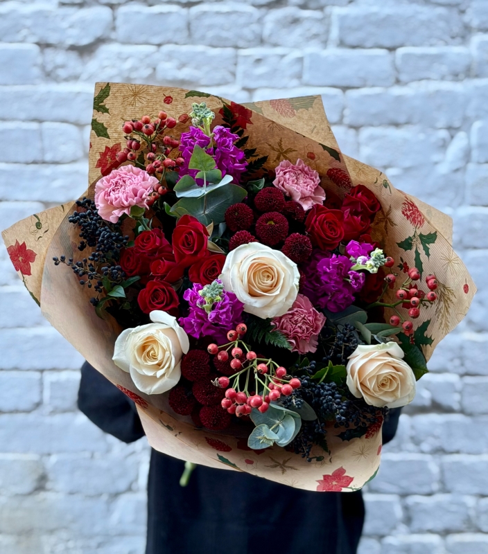 Our Very Berry bouquet is bursting with red, pink and raspberry tones. With blue and red berries to compliment. Each Hand tied is unique depending on the day, carefully arranged and presented in an aqua bubble and box, to ensure freshness and ease of transport.