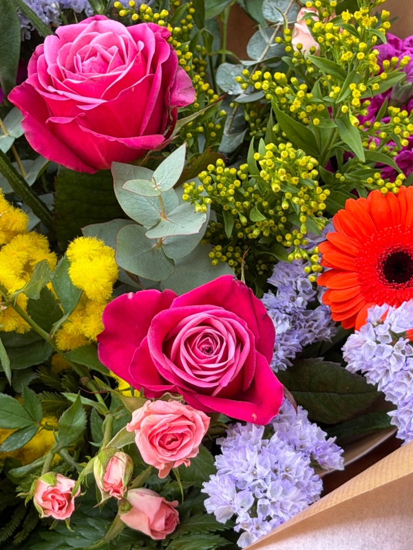 Please note, the picture is used as an example so your flowers may differ depending on availability. Our flowers are beautiful and fresh, so some of them may arrive in tight buds, but don't panic as they will soon open. Please bear in mind that they are a natural and living product and you can extend their life and your enjoyment of them by following some simple tips included on our care card.
